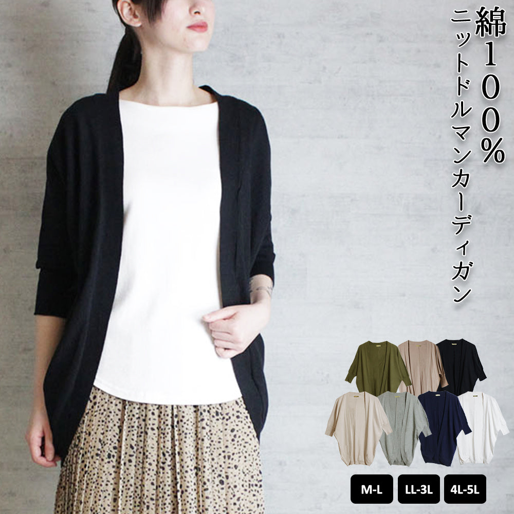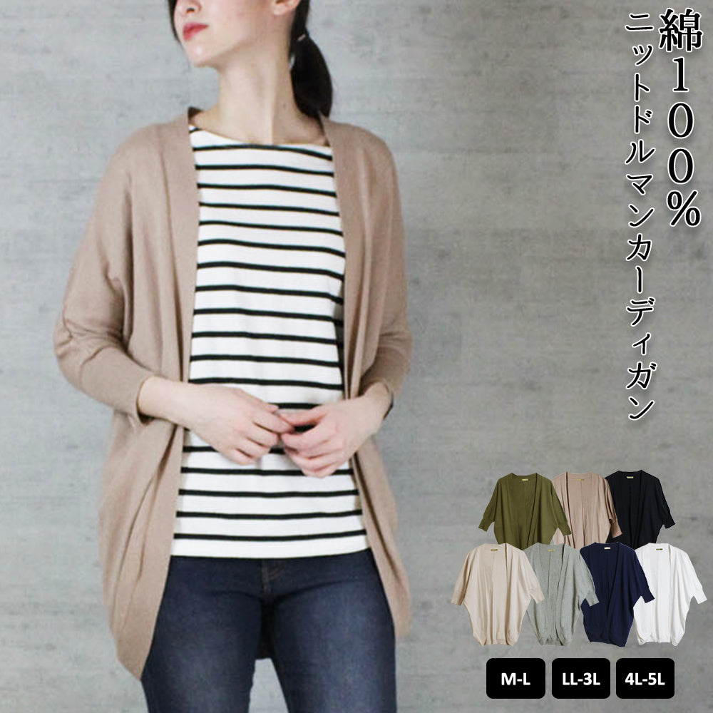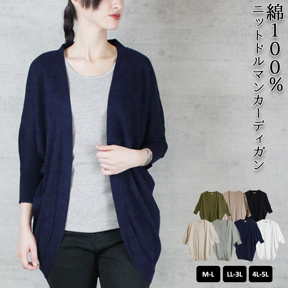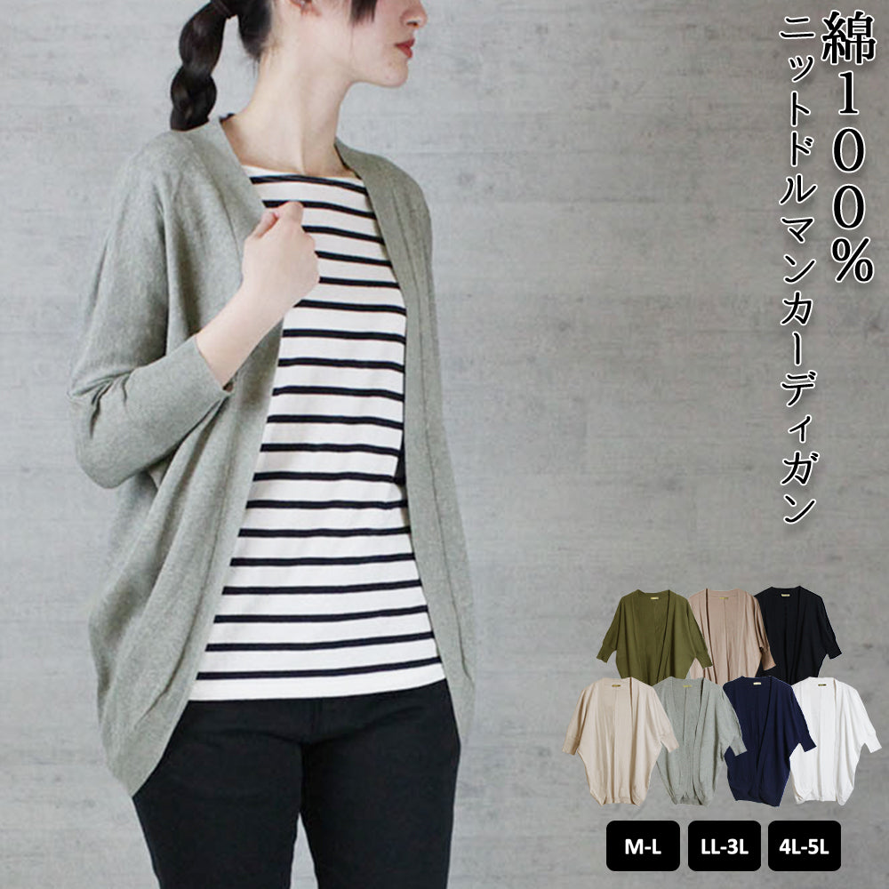 綿ニットドルマンカーディガン トップス 夏服 大きいサイズ カーディガン サマーカーディガン サマーニット ロングカーディガン 半袖 ハーフスリーブ ビッグサイズ 体型カバー ビッグシルエット 大きいサイズ M/L/LL/XL/XXL/3L/4Lサイズ 春 夏 秋