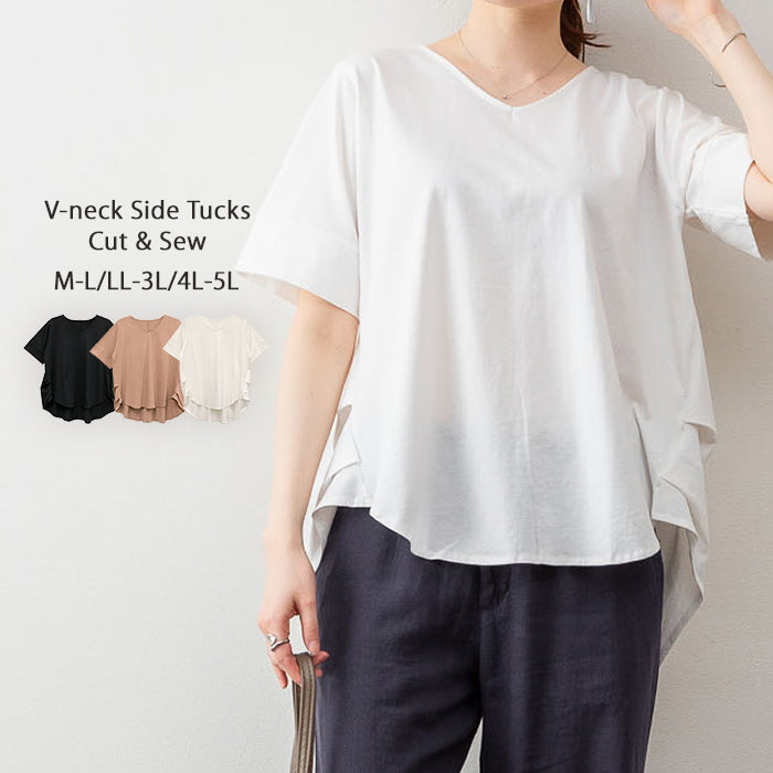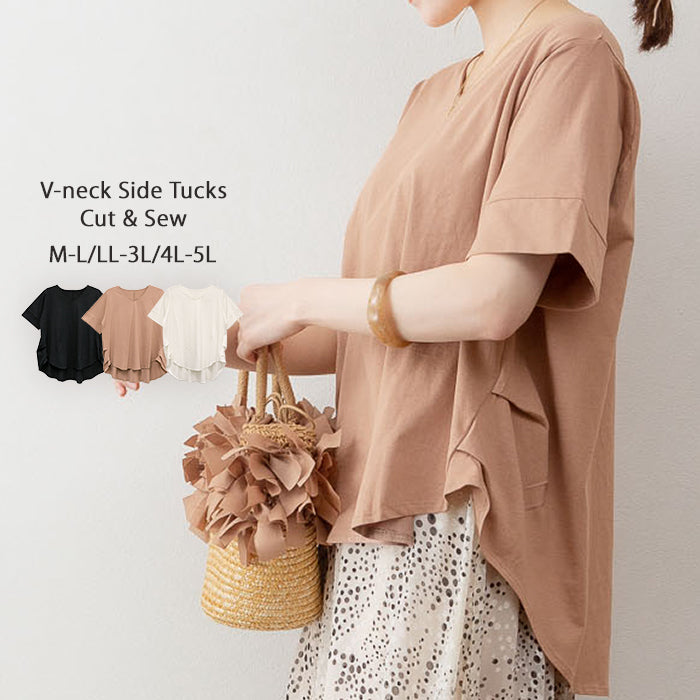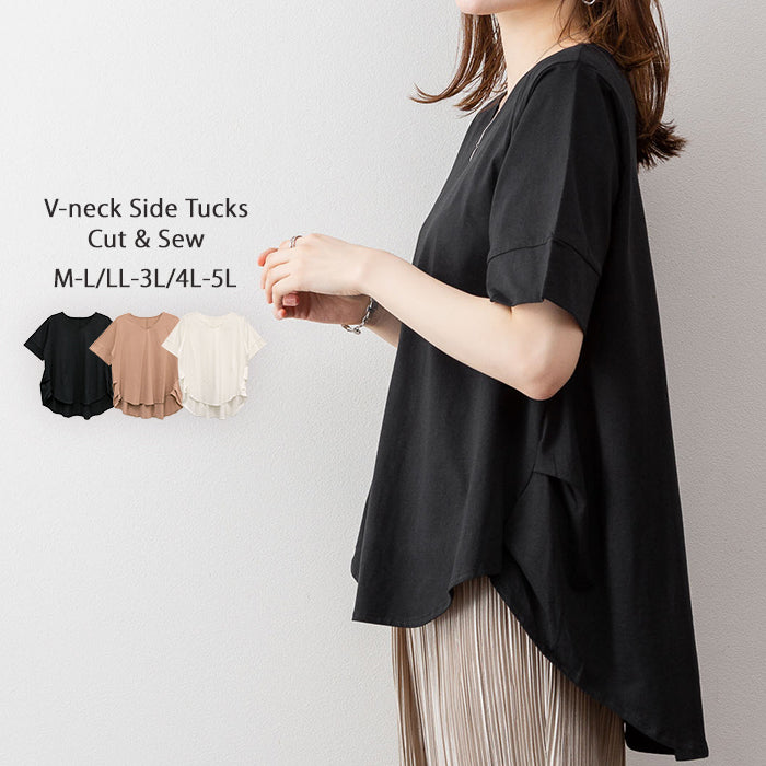 また、Vネックと脇タックのデザインにより、女性らしいシルエットが際立ち、スタイリッシュな印象を与えます。
