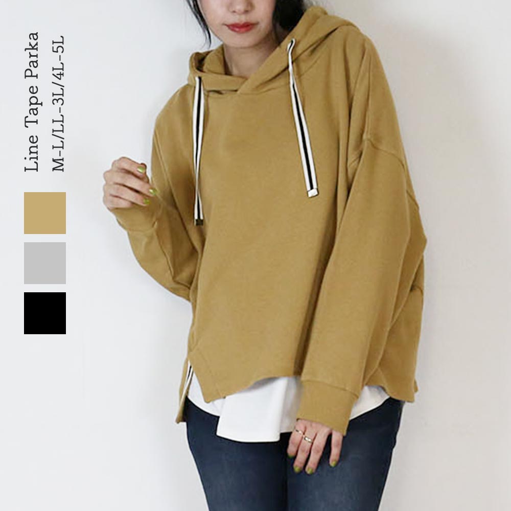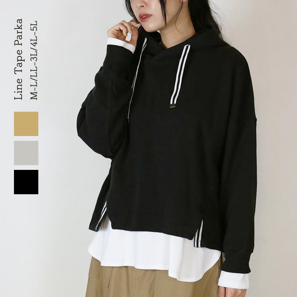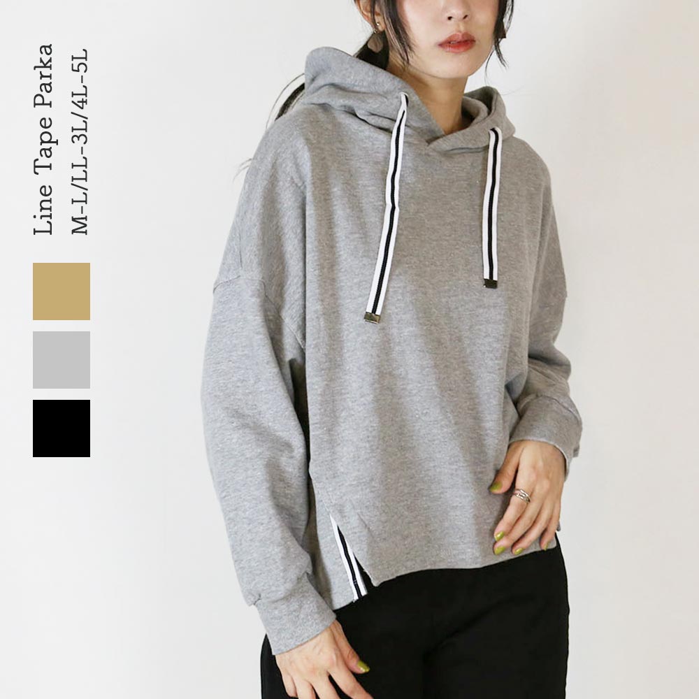 裏毛ラインテープパーカー パーカー M L LL 3L 4L レディース 春夏秋冬 楽ちん 大きいサイズ カジュアル 体型カバーシンプル リラックス お洒落