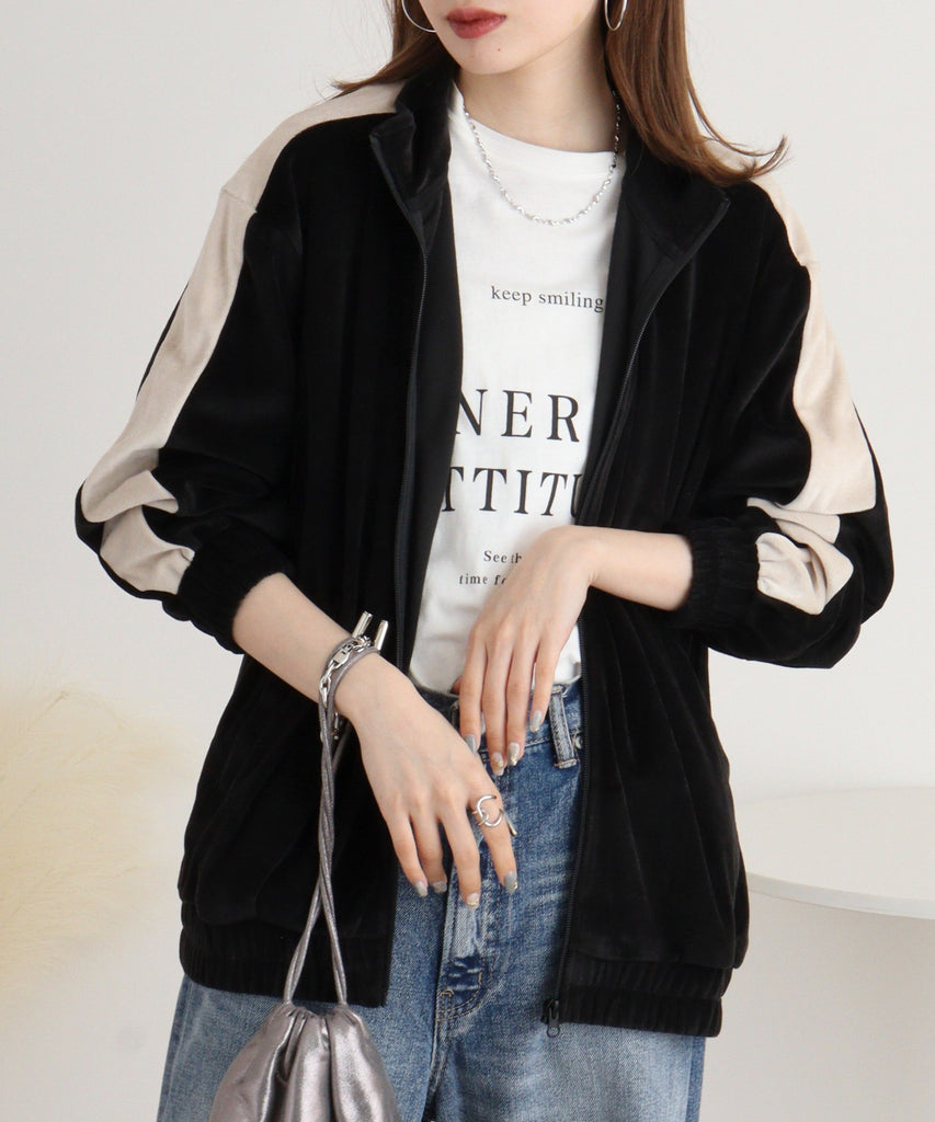 TCカットベロアライン入りZIPスタンドジャケット